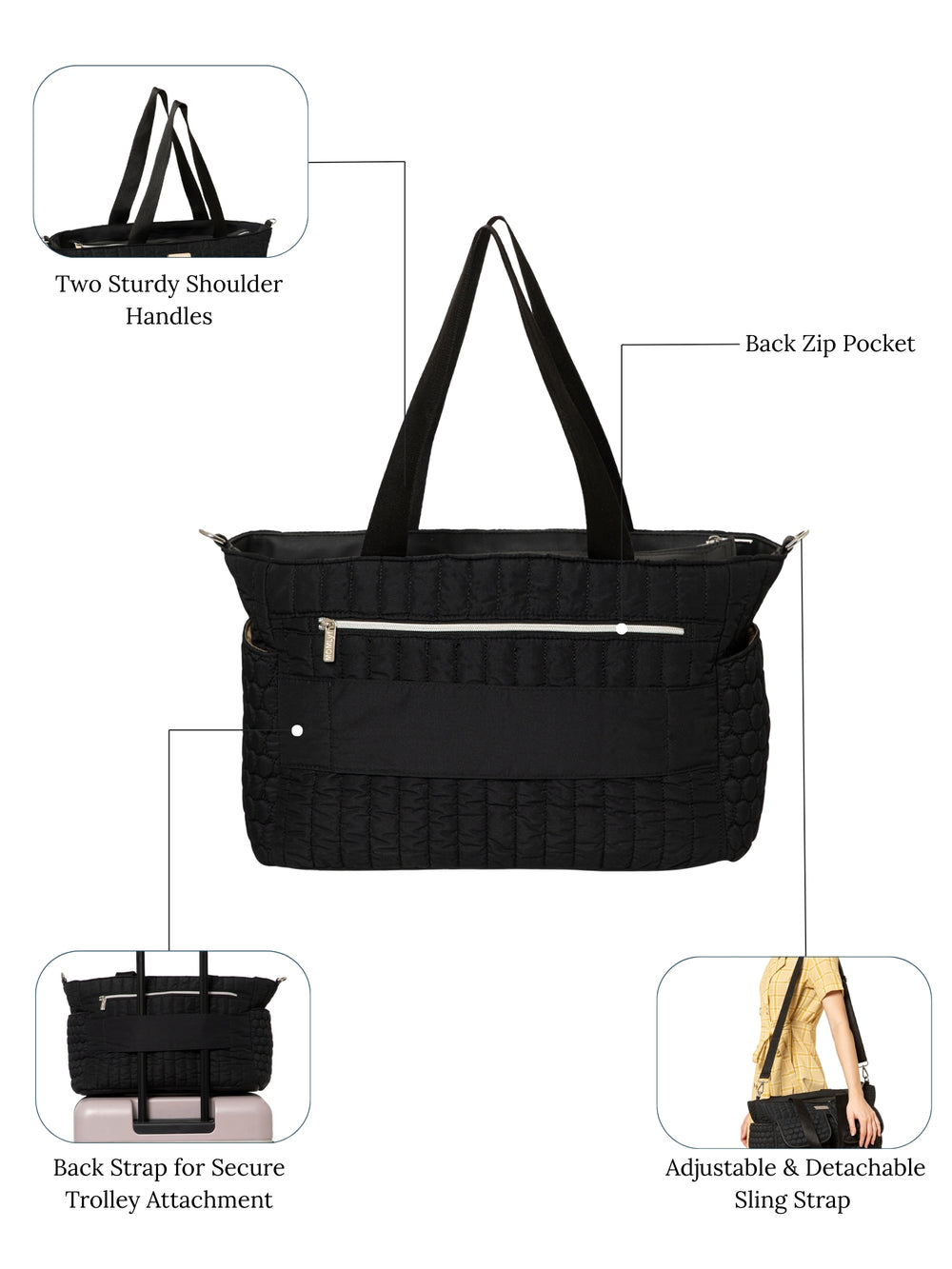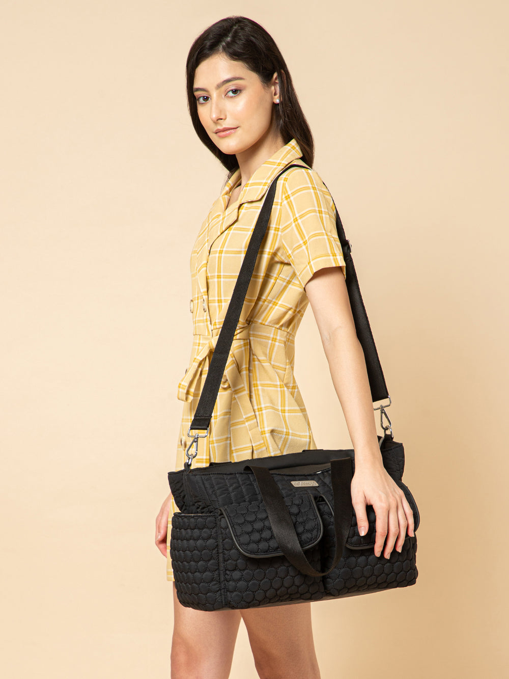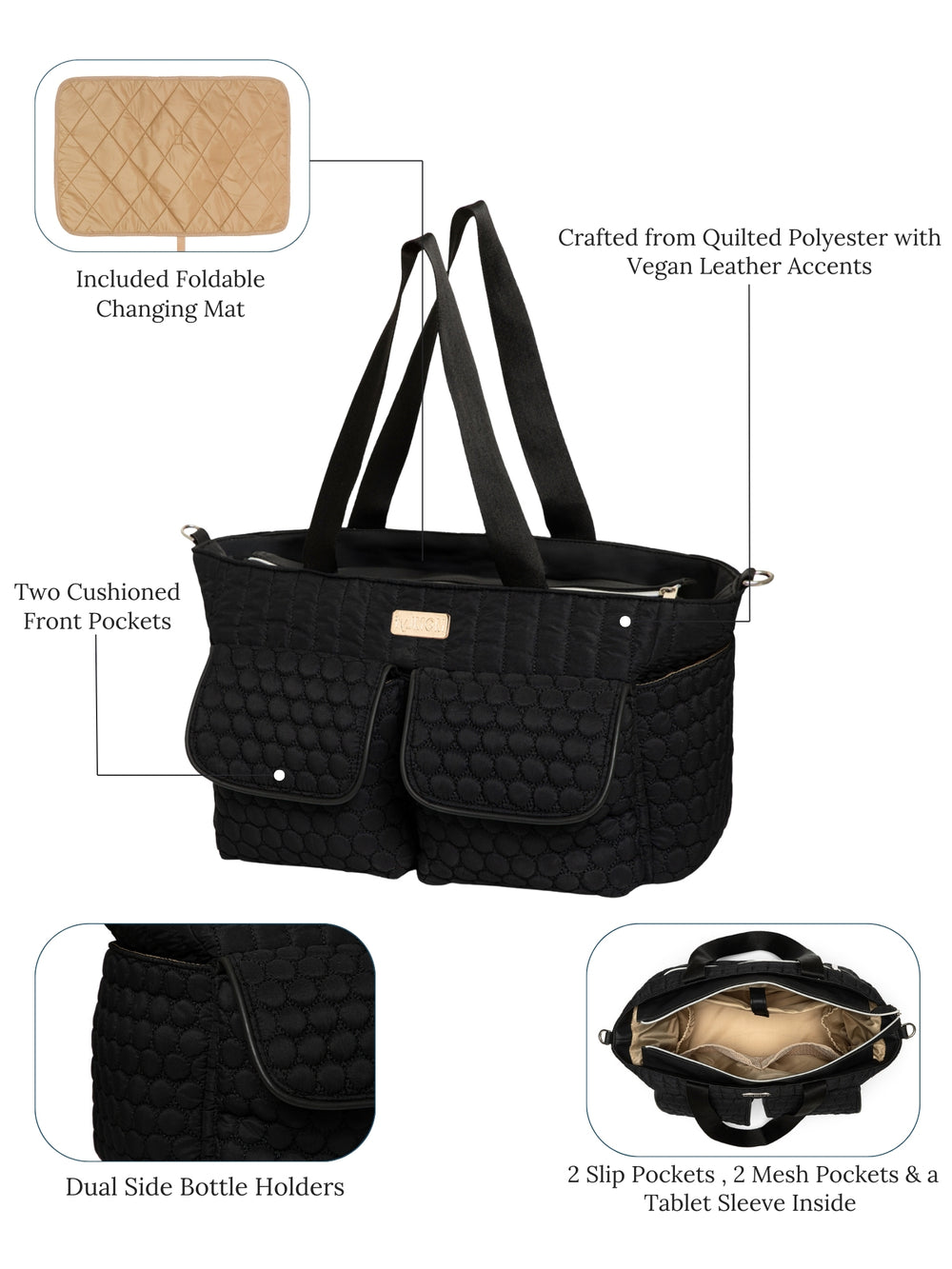 MOMLyf Cavya Diaper Tote - Black. Styled Like Poetry. Packed for Reality.