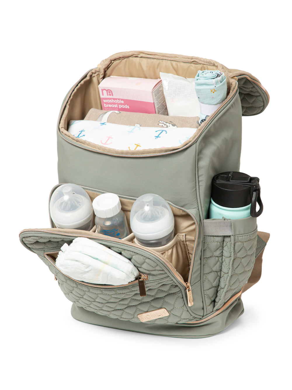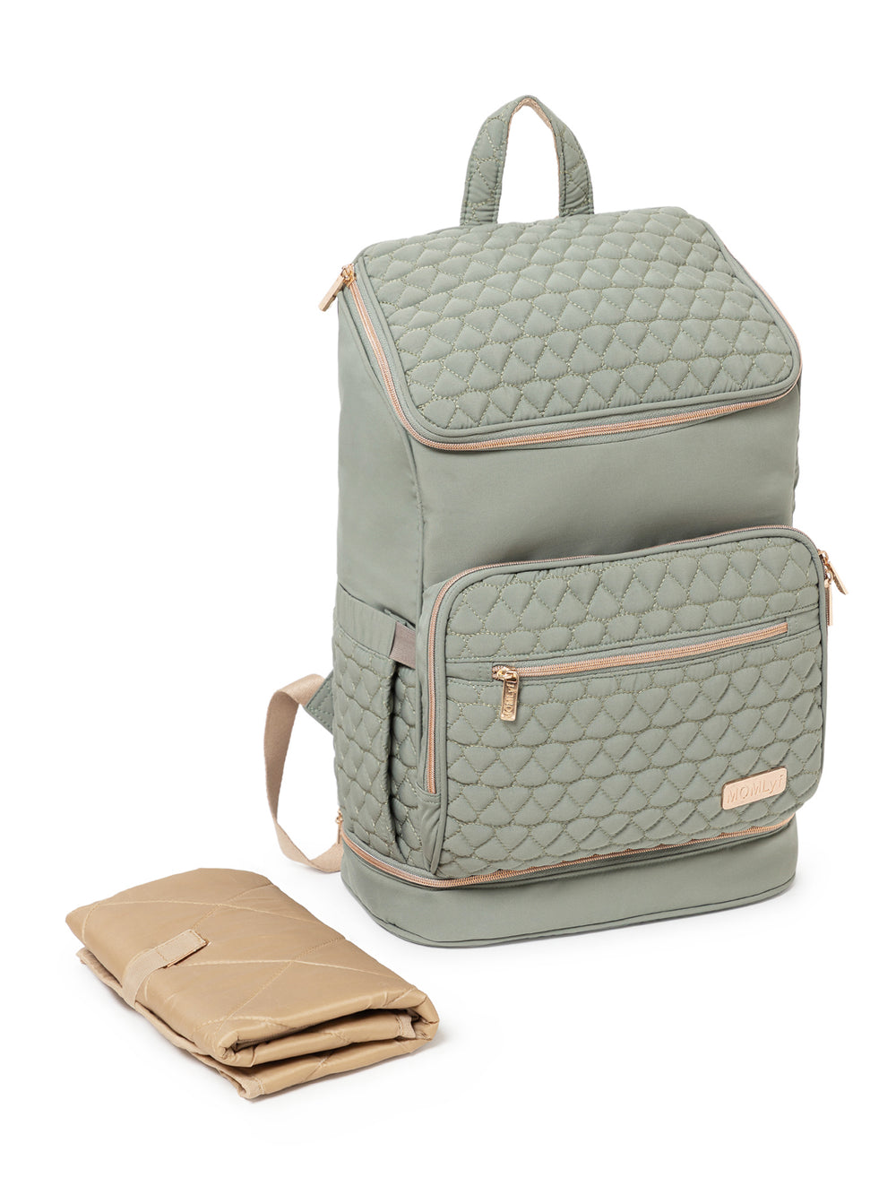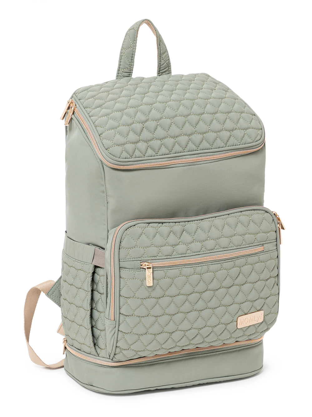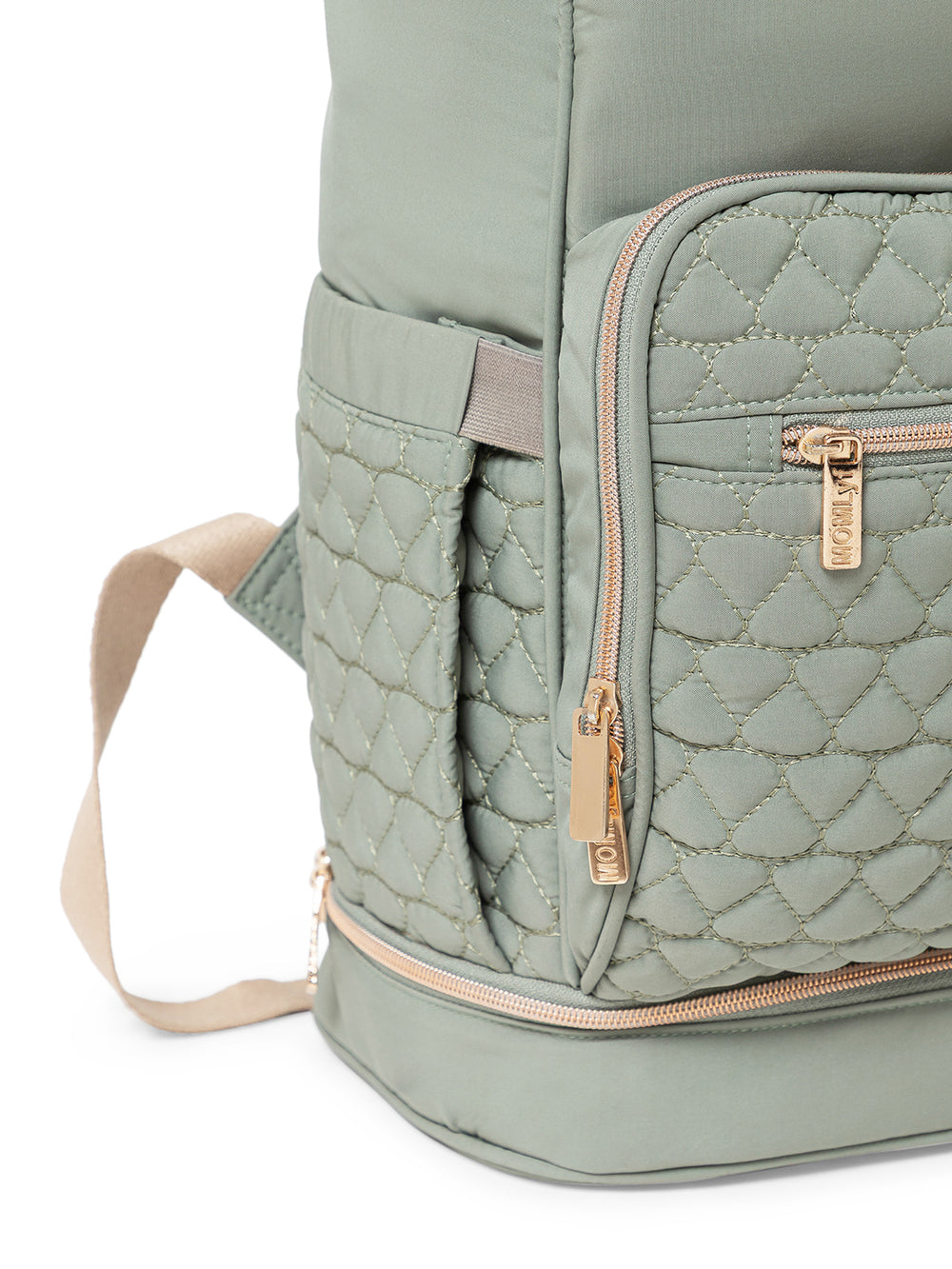 MOMLyf Keera Diaper Backpack - Sage Green. Chic on the outside, chaos-proof on the inside.