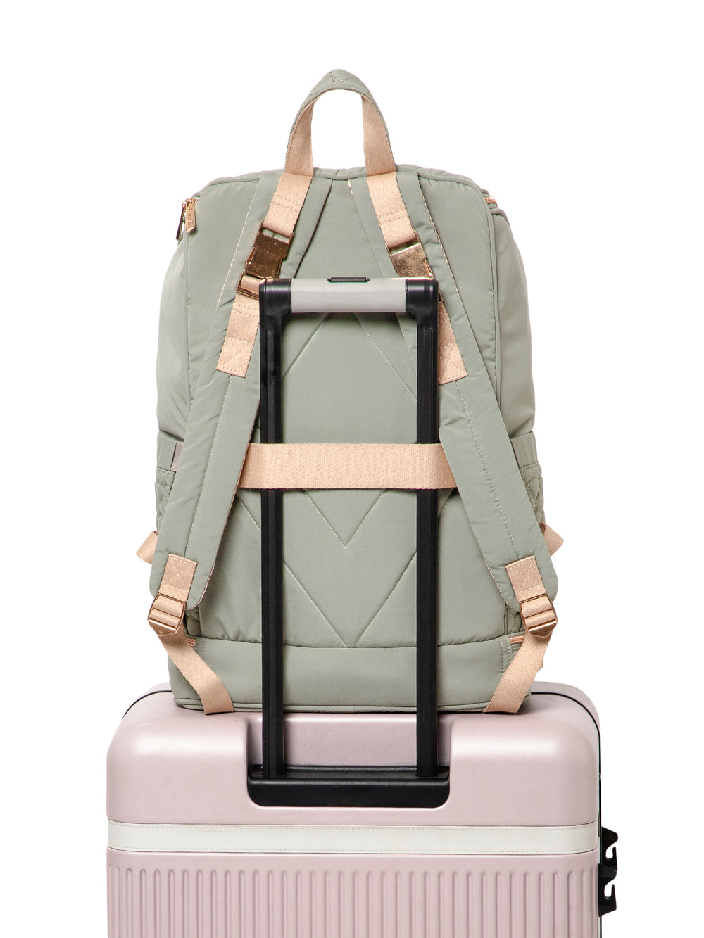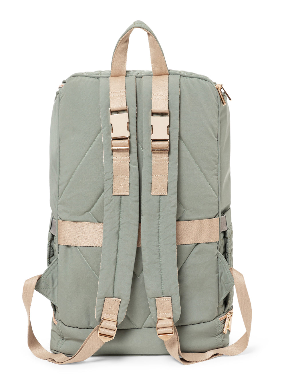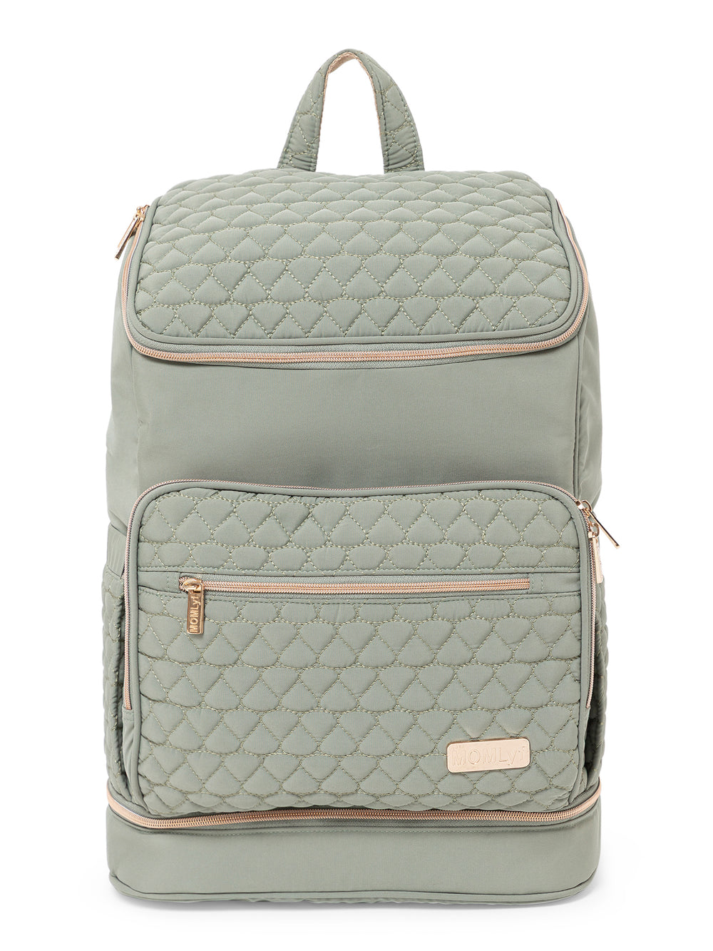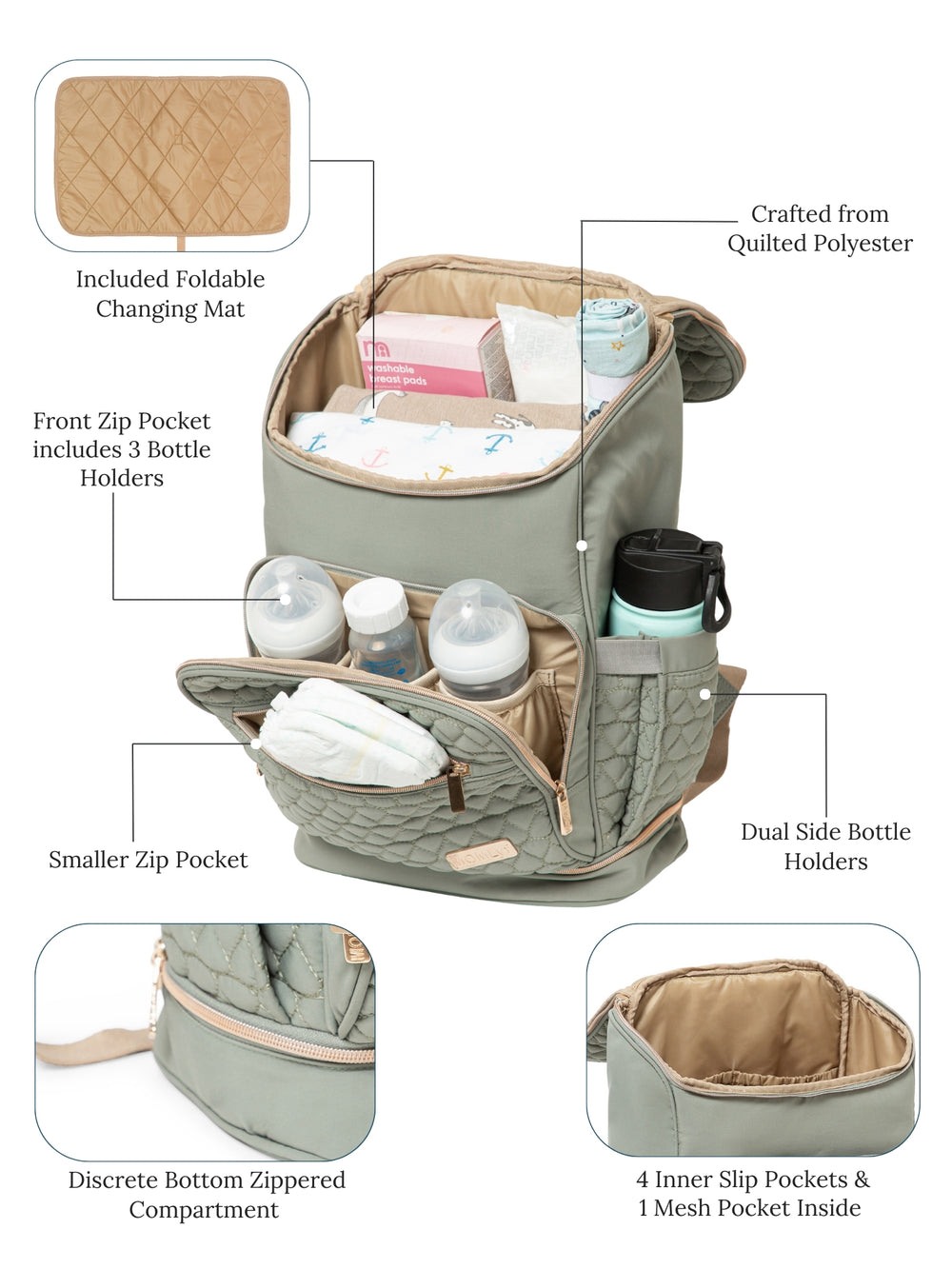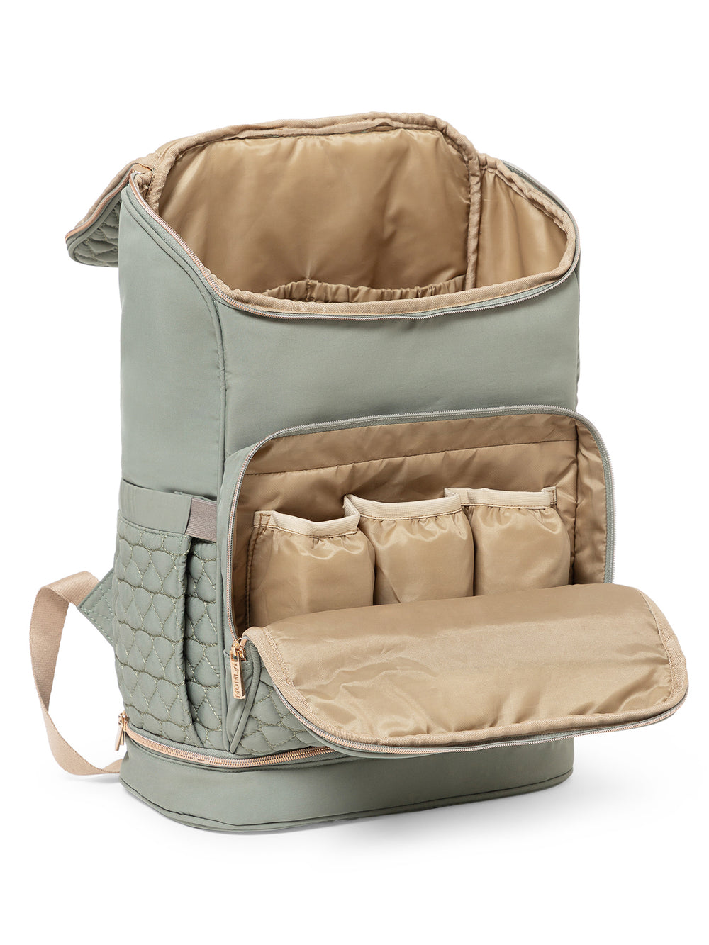MOMLyf Keera Diaper Backpack - Sage Green. Chic on the outside, chaos-proof on the inside.